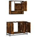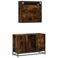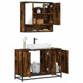 This stylish bathroom furniture set is an excellent addition to your bathroom, giving it a tidy and striking appearance! Stable and durable material: Engineered wood is a durable and stable material with a smooth surface that is resistant to moisture, warping, and splitting, making it a reliable choice for a variety of projects.Stable and long-lasting frame: The metal frame of the cabinet enhances your interior with an industrial style and provides exceptional durability, stability and resistance to corrosion.Ample storage space: This bathroom furniture offers ample storage space to keep your essentials well organised and within reach.Practical cabinet top: The top of the sink cabinet has a hole, so it is ideal for placing the sink.Wall-mounted function: The washroom mirror cabinet can be wall-mounted to save floor space, which makes it especially suitable for rooms with limited space. Warning:To prevent it from tipping over, this product must be used with the provided wall attachment device. Good to know:Screws and plugs for inside the wall are not included. We advise to find and use screws and plugs suitable specifically for your walls. If you're not sure, you can consult with a professional. Please read and follow each step of the instructions.