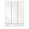 The modern wooden wardrobe is designed to be a timeless addition to your interior decor. The wardrobe, made of solid pinewood, is very sturdy. The clothes cabinet has 2 drawers and 5 shelves, providing ample space for keeping smaller items organised and within reach. It has a large compartment equipped with a hanger bar so you can use it to hang trench coats, dresses, etc. The closet is easy to assemble. The bedroom cabinet is also easy to clean with a dry cloth.