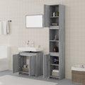 This 3-piece stylish bathroom furniture set, featuring spacious storage space, is an excellent addition to your bathroom, giving it a neat and impressive appearance! Practical material: The engineered wood is of exceptional quality with smooth surface and also features strength, stability and resistance to moisture.Ample storage: This bathroom mirror cabinet offers ample storage space for keeping your laundry essentials, toiletries and other items well organised and within reach. You can create and optimally use additional storage space in your bathroom.Utility mirror: The bathroom cabinet with mirror is perfect for your daily beauty routine. The mirror allows you to take care of your facial skin and wear your makeup too!Stylish design: The clean lines and sleek design make this bathroom sink cabinet blend into your bathroom perfectly. Warning:In order to prevent overturning, this product must be used with the wall attachment device provided. Note:Screw(s) and plug(s) for inside the wall are not included. Seek and use screw(s) and plug(s) suitable for your walls. If you are uncertain, seek professional advice. Read and follow each step of the instruction carefully.Each product comes with an assembly manual in the box for easy assembly.