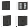 This 4-piece kitchen cabinet set, with its elegant design, optimises your kitchen space and provides ample storage space for your personal belongings! Stable and durable material: Engineered wood is a durable and stable material with a smooth surface that is resistant to moisture, warping, and splitting, making it a reliable choice for a variety of projects.Ample storage space: The kitchen cabinet set has many compartments, and offers sufficient space to store bowls, plates, pots, and other kitchen appliances.Adjustable feet: The bottom cabinets feature adjustable feet that can be adjusted in height to suit your kitchen layout.Easy to maintain: Thanks to its smooth surface, these kitchen cabinets are easy to clean with a damp cloth and require less maintenance. Warning:To prevent it from tipping over, this product must be used with the provided wall attachment device. Good to know:Screw(s) and plug(s) for inside the wall are not included. Seek and use screw(s) and plug(s) suitable for your walls. If you are uncertain, seek professional advice. Read and follow each step of the instruction carefully.The worktop, sink and faucet are not included in the delivery.