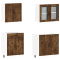 This 4-piece kitchen cabinet set, with its elegant design, optimises your kitchen space and provides ample storage space for your personal belongings! Stable and durable material: Engineered wood is a durable and stable material with a smooth surface that is resistant to moisture, warping, and splitting, making it a reliable choice for a variety of projects.Ample storage space: The kitchen cabinet set has many compartments, and offers sufficient space to store bowls, plates, pots, and other kitchen appliances.Adjustable feet: The bottom cabinets feature adjustable feet that can be adjusted in height to suit your kitchen layout.Easy to maintain: Thanks to its smooth surface, these kitchen cabinets are easy to clean with a damp cloth and require less maintenance. Warning:To prevent it from tipping over, this product must be used with the provided wall attachment device. Good to know:Screw(s) and plug(s) for inside the wall are not included. Seek and use screw(s) and plug(s) suitable for your walls. If you are uncertain, seek professional advice. Read and follow each step of the instruction carefully.The worktop, sink and faucet are not included in the delivery.