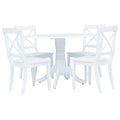 Designed with stylish lines, this wooden dining set will be a great choice for your dining room or kitchen. The table frame and chairs are made of solid rubber wood, enabling them exceedingly durable and hardwearing. The table top is made of MDF, which provides a stable place for you to have meals. Additionally, thanks to the polished, painted and lacquered finish, the dinner set is easy to clean with a damp cloth. The simple elegance of this dining set will make everyday dinners special. Delivery includes 1 table and 4 chairs.