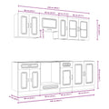 This 8-piece kitchen cabinet set, with its elegant design, optimises your kitchen space and provides ample storage space for your personal belongings! Stable and durable material: Engineered wood is a durable and stable material with a smooth surface that is resistant to moisture, warping, and splitting, making it a reliable choice for a variety of projects.Ample storage space: The kitchen cabinet set has many compartments, and offers sufficient space to store bowls, plates, pots, and other kitchen appliances.Adjustable feet: The bottom cabinets feature adjustable feet that can be adjusted in height to suit your kitchen layout.Easy to maintain: Thanks to its smooth surface, these kitchen cabinets are easy to clean with a damp cloth and require less maintenance. Warning:This product must be secured by installing a worktop. Good to know:Screw(s) and plug(s) for inside the wall are not included. Seek and use screw(s) and plug(s) suitable for your walls. If you are uncertain, seek professional advice. Read and follow each step of the instruction carefully.The worktop, sink and faucet are not included in the delivery.