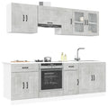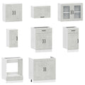 This 8-piece kitchen cabinet set, with its elegant design, optimises your kitchen space and provides ample storage space for your personal belongings! Stable and durable material: Engineered wood is a durable and stable material with a smooth surface that is resistant to moisture, warping, and splitting, making it a reliable choice for a variety of projects.Ample storage space: The kitchen cabinet set has many compartments, and offers sufficient space to store bowls, plates, pots, and other kitchen appliances.Adjustable feet: The bottom cabinets feature adjustable feet that can be adjusted in height to suit your kitchen layout.Easy to maintain: Thanks to its smooth surface, these kitchen cabinets are easy to clean with a damp cloth and require less maintenance. Warning:To prevent it from tipping over, this product must be used with the provided wall attachment device. Good to know:Screw(s) and plug(s) for inside the wall are not included. Seek and use screw(s) and plug(s) suitable for your walls. If you are uncertain, seek professional advice. Read and follow each step of the instruction carefully.The worktop, sink and faucet are not included in the delivery.