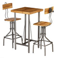 This bar set will make a great addition to your kitchen and dining room. The table and chairs are made of reclaimed teak, which is solid, stable, durable and beautiful. The steel frames contribute to the set's sturdiness as well as to its industrial style. The tabletop surface is easy to clean with a damp cloth. The chair footrests add to the set's seating comfort. Every step of the construction process is carried out with the greatest care, be it polishing or lacquering. The bar set is easy to assemble. Delivery includes 1 table and 2 bar chairs. Important note: The colours and grains of the wood may vary from piece to piece, making each item unique and slightly different from the next. The delivery is random, ensuring the exclusivity and individuality of your product.
