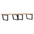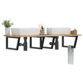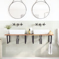 The wall mounted basin shelf securely attaches to the wall, providing an elegant and space-saving solution for your bathroom. Sturdy and long-lasting: This basin shelf is combined with a steel structure and a solid acacia wood top, making it sturdy, stable, and long-lasting.Space-saving: The floating basin shelf has ample space to store creams and small items. Thanks to the trapezium shape, you can hang towels or other things on the support to save space.Easy to use: The countertop comes undrilled to allow the basin to be mounted on the left, right, or in the centre, depending on your room's requirements. Thanks to the pre-drilled holes in the holder, it can be easily assembled with the tabletop and mounted on the wall.Wide applications: Thanks to its modern design, it provides additional space for various types of bathrooms. Good to know:Screws are not included, you can purchase the screws separately based on the information provided below.Wall attachment: 2 pcs M8 expansion screws per bracketWooden top: 2 pcs M5x18 screws (T=2) or 2 pcs M5x20 screws (T=2,5/4cm) per bracket