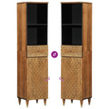 This bathroom cabinet is a great choice for your bathroom, making it tidy and organised! Solid mango wood: Solid mango wood is a strong, tropical hardwood that makes sturdy furniture. Its beautiful wood grains make every piece of furniture slightly different from the next. Made of solid mango wood, the bathroom storage cabinet is durable and stable.Ample storage space: This cabinet for bathroom offers ample storage space to keep your essentials well organised and within reach.Flexible door: You can install the door either on the left side or right side based on your own needs.Sturdy legs: The iron legs add to the bathroom cupboard's sturdiness and stability.Retro style: This storage cabinet with hand-carved floral patterns brings the luxury of retro style to your interior, being the focal point of your room. Good to know:Each item is unique with variations in colours and grains. The delivery is random, ensuring the exclusivity and individuality of your product. Warning:To prevent it from tipping over, this product must be used with the provided wall attachment device.