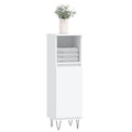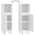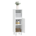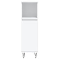 This bathroom cabinet is meant to be a great addition to your bathroom, giving it a tidy and striking appearance! Durable material: The engineered wood is of exceptional quality with smooth surface and also features strength, stability, and resistance to moisture.Ample storage space: The bathroom furniture has 2 compartments with door and 1 open shelf, offering various storage options and extra space to store items in your bathroom.Flexible door installation: You can install the door either on the left or right side based on your own needs.Iron feet: The iron feet add an industrial style to your interior while ensuring the stability of the bathroom storage cabinet. Warning:To prevent it being overturned, this product must be used with the provided wall attachment device.
