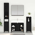 This modern bathroom furniture set is the epitome of contemporary design, seamlessly blending into any bathroom decor. Its textured surface and matte finish deliver a sophisticated appeal while offering practical features for everyday use. Ideal for anyone looking to enhance their bathroom with a stylish yet functional touch, the set provides ample storage space, ensuring organized and clutter-free surroundings. Suited for both urban apartments and suburban homes, this set brings elegance and utility together. Its sleek lines, combined with a minimalist aesthetic, emphasize the simplicity and functionality characteristic of modern styling, making it a versatile addition for any bathroom setup. Quality Materials Constructed from engineered wood, the furniture set is designed for longevity and reliable sturdiness, providing a solid structure that enhances its durability and resistance to common bathroom conditions. Component Features The set includes hinge doors that allow easy access to stored items. Engineered wood shelves offer practical storage solutions for personal effects, while the square steel legs ensure stable support. Functional Design Constructed with consideration for space optimization, the rectangular shape of the cabinets ensures they fit comfortably in different bathroom layouts, making them adaptable for various room sizes and configurations. Space-Saving Solution Ideal for smaller spaces, the set allows homeowners to organize and store essentials efficiently. Each cabinet accommodates a range of items, maximizing bathroom organization and minimizing clutter. Easy Maintenance Secure the furniture to the wall to prevent tipping. For cleaning, simply use a damp cloth to wipe down surfaces, maintaining the set's pristine appearance without compromising its integrity over time.