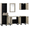 This modern rectangular bathroom suite is just the right mix of style and practicality for any bathroom. With a minimalist design and clean lines, it fits right in with the modern feel of your home. Picture walking into a tidy bathroom where every cabinet looks sleek and polished, blending perfectly with your contemporary style. This suite is built to handle all your storage and style needs, making it a key piece for both smaller and larger bathrooms. Materials: Made with quality components, the bathroom suite shows off fine craftsmanship. Each cabinet has a textured surface, giving a natural finish that adds sophistication and charm to your bathroom. The materials used ensure it’s durable and has a timeless, classy look for every style lover. Included Components: The suite comes with everything you need, including a sink cabinet, a mirror cabinet, and various bathroom cabinets - big, small, and wall-mounted. Each piece is designed to store your bathroom essentials securely, and the mirror cabinet adds extra convenience to your morning routine. Features / Function / Design: Ideal for indoor use, this bathroom suite showcases unique colours and grains for added charm. The hinge doors work smoothly, and there’s enough storage for toiletries, towels, and other essentials. This combo creates a well-rounded, functional design, spot on for modern living. Recommended Uses: Perfect for homes wanting to boost storage without skimping on style. Whether it's for daily items or displaying decorative bits, this suite makes any bathroom space better, adding both function and flair for those after coherent design. Care & Maintenance: Keeping the suite looking fab is easy. Just give it a wipe with a damp cloth to keep it looking fresh. Regular cleaning means it’ll stay the centrepiece of your bathroom, blending function with style for years.