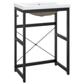 This bathroom washbasin frame with a bulid-in basin is a perfect match for your bathroom or washroom with a clean, tidy appearance. The wash stand is made of powder-coated iron, making it stable and durable. This washbasin frame gives easy access to towels and baskets and creates a more ample space than closed storage. Made of ceramic, the basin can not only serve as a vessel for daily use but also as an adornment in your living space. Thanks to its trendsetting and contemporary design, this washbasin will definitely suit any decor. An overflow is also equipped to flow water out when it gets too full. Its glazed surface brings itself a modern yet elegant design. Additionally, the washbasin frame and basin are easy to clean with a damp cloth. Please note: The tap and the drain are not included in the delivery.