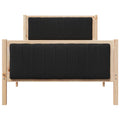 This elegant platform bed frame is a seamless blend of style and functionality, ideally suited for modern living spaces. Its rectangular shape and sleek lines make it a standout piece in any bedroom, while offering firm, even support for your mattress. Enjoy a contemporary look with a bed frame that features a polished appearance and reliable build, appealing to those with a keen eye for design. The stylish visuals are complimented by the integrated headboard and footboard, each crafted to enhance the product's overall quality experience. Materials: Crafted from durable solid pine wood, the bed frame offers high stability and a natural textured appearance. It's designed for indoor use, offering both functionality and style. This choice of material ensures a lasting structural integrity, holding up well under daily use. Included Components: The bed comes with a finely upholstered headboard and footboard, adding a layer of comfort and style to your bedroom setup. The wall-mounted headboard provides added support, while the footboard ensures that the mattress remains in place during extended use. Features /Function /Design: With its platform structure, this bed frame negates the need for a box spring, offering simplicity and maximized use of space. The wall-mounted headboard functionally saves room, creating a refined look that aligns well with minimalist sensibilities. Recommended Uses: Perfect for any bedroom, this bed frame brings a sophisticated touch, making it an excellent choice for interiors focused on modern design. Whether furnishing a master suite or a guest room, its versatile framework fits effortlessly into various room aesthetics. Care &Maintenance: Keep the surface looking fresh by wiping it with a damp cloth. The frame's matte finish resists stains, requiring minimal effort for regular cleaning, thus maintaining its pristine look over time.