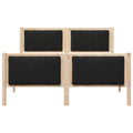 This elegant platform bed frame is a seamless blend of style and functionality, ideally suited for modern living spaces. Its rectangular shape and sleek lines make it a standout piece in any bedroom, while offering firm, even support for your mattress. Enjoy a contemporary look with a bed frame that features a polished appearance and reliable build, appealing to those with a keen eye for design. The stylish visuals are complimented by the integrated headboard and footboard, each crafted to enhance the product's overall quality experience. Materials: Crafted from durable solid pine wood, the bed frame offers high stability and a natural textured appearance. It's designed for indoor use, offering both functionality and style. This choice of material ensures a lasting structural integrity, holding up well under daily use. Included Components: The bed comes with a finely upholstered headboard and footboard, adding a layer of comfort and style to your bedroom setup. The wall-mounted headboard provides added support, while the footboard ensures that the mattress remains in place during extended use. Features /Function /Design: With its platform structure, this bed frame negates the need for a box spring, offering simplicity and maximized use of space. The wall-mounted headboard functionally saves room, creating a refined look that aligns well with minimalist sensibilities. Recommended Uses: Perfect for any bedroom, this bed frame brings a sophisticated touch, making it an excellent choice for interiors focused on modern design. Whether furnishing a master suite or a guest room, its versatile framework fits effortlessly into various room aesthetics. Care &Maintenance: Keep the surface looking fresh by wiping it with a damp cloth. The frame's matte finish resists stains, requiring minimal effort for regular cleaning, thus maintaining its pristine look over time.