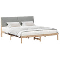 This bed frame with headboard combines modern style and practicality, making it suitable for those who appreciate simplicity and functionality in their bedroom furniture. The flat, rectangular design with a matte finish lends an inviting and elegant feel, creating a focal point in any room. Tailored for a seamless bedroom setup, it perfectly complements both classic and contemporary interiors, offering a stylish yet comfortable sleeping solution. Solid Pine Construction Crafted from solid pine wood, the frame ensures reliable support, demonstrating its robust nature and commitment to quality. This choice of construction material is renowned for its strength and ability to endure wear, providing a bed frame ready for prolonged use and enjoyment. Polyester Headboard The headboard is upholstered with polyester, delivering a soft, pleasing texture. Its wall-mounted design conserves space, contributing to a tidy and spacious room appearance, while retaining comfort and support for leisurely lounging or reading. Rustic Matte Finish The frame's matte finish offers a sophisticated look with a smooth, understated elegance. This gives it a timeless appeal, harmoniously blending with various décor styles, from vintage to ultra-modern. Fixed Slatted Frame Featuring a fixed slatted frame, this bed provides consistent mattress support, eliminating the need for a box spring. The slats'rigid nature aligns with an affordable and straightforward assembly using a screwdriver, which ensures that anyone can set it up with ease. Care and Maintenance Following a simple care routine, the bed frame maintains its looks by wiping with a damp cloth, providing a straightforward approach to keeping the furniture in pristine condition without needing specialized cleaning products.