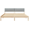 This beautifully crafted bed frame with headboard offers a modern, minimalist design that enhances any bedroom decor. Its sleek rectangular shape and clean lines provide a stylish and functional base for a restful night's sleep. Designed for indoor use, this bed frame is made from solid pine wood, providing an and robust structure that ensures stability and comfort. It suits various decor aesthetics, making it an excellent choice for those who appreciate simple yet sophisticated design. Solid Pine Wood Construction Crafted from high-quality solid pine wood, this bed frame offers exceptional stability and longevity. The natural texture of the wood adds a touch of warmth and elegance to your bedroom decor, while its sturdy construction ensures it remains a reliable fixture in your home for years to come. Wall-Mounted Polyester Headboard The polyester upholstered headboard provides added comfort while reading or lounging in bed. Easy to fixture on the wall, it saves floor space, giving your bedroom a streamlined and neat appearance. The fabric's textured finish introduces a sense of coziness and warmth. Fixed Slatted Frame Design The fixed slatted frame supports your mattress without requiring a box spring. This feature enhances breathability underneath the mattress, promoting better sleep quality. Its durable foundation offers excellent support, contributing to a peaceful sleep environment. Modern Minimalist Style The modern minimalist design, characterized by simple, clean lines and a lack of ornamentation, enhances any bedroom decor. Its understated elegance fits seamlessly into contemporary, urban, or traditional themes, offering versatility in styling. Easy Maintenance Maintain the bed frame effortlessly by wiping with a damp cloth. This ensures it remains fresh and clean without the need for intensive cleaning methods, preserving its original appeal.