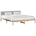 This contemporary platform bed frame with headboard combines style and functionality, designed to add a fresh and sleek look to any bedroom. It features a beautiful rectangular shape that complements modern home decor, offering a perfect blend of aesthetic appeal and practicality. This bed frame is ideal for those looking for a stylish, yet durable solution for their sleeping space, adding a touch of elegance and sophistication to any bedroom configuration. Materials: Constructed from solid pine wood, this bed frame showcases robust longevity and a timeless aesthetic. The high-quality wood is selected for its strength and durability, providing a stable and reliable foundation. Its natural look enhances the appeal, giving your bedroom a warm and inviting atmosphere. Included Components: The bed frame comes complete with a wall-mounted, polyester-upholstered headboard, emphasizing a streamlined and space-saving design. The headboard offers a presentable and polished look, enhancing overall comfort with its soft, cushioned surface. The square leg design ensures additional stability and sturdiness. Features /Function /Design: Adopting a contemporary style, this bed frame is the epitome of current design ,characterized by its sleek lines and fresh appearance. Its finished back allows for versatile placement, ensuring a polished look from all angles, while its durable structure is built to withstand daily use. Recommended Uses: Perfect for bedrooms in modern homes, this platform bed frame provides a sturdy base that negates the need for a box spring. It's an ideal choice for anyone looking to elevate their bedroom style or add a sophisticated touch to guest rooms. Care &Maintenance: Maintenance is effortless; simply wipe the frame clean with a damp cloth to maintain its pristine appearance. Regular cleaning ensures long-lasting allure while being gentle on the environment.