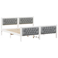 This Modern Bed Frame encompasses the essence of minimalist design with its simple structure and fine craftsmanship. Crafted for the contemporary bedroom, this piece offers a sleek, orderly look that pairs effortlessly with various decors. Its solid pine wood construction ensures stability, while the 100% polyester upholstered headboard adds a soft, inviting touch. Suitable for indoor use, it seamlessly combines practicality and style for those who appreciate sophisticated elegance. Frame Material: Constructed from solid pine wood, the bed frame ensures reliable support and robustness. This hardwood offers a natural aesthetic while resisting everyday wear and tear, preserving its integrity over years of use. Its structured shape contributes to both the visual and functional stability, making it a practical choice for any home. Headboard Design: The upholstered headboard made of plaster and 100% polyester provides both comfort and a modern look. It serves as a cozy backdrop for reading or watching TV, while its sophisticated appearance enhances the room's decor effortlessly. This headboard aligns with the minimalist ideals of the frame by incorporating subtle, refined elegance. Fixed Slatted Frame: Equipped with a rigid, non-flexible slatted frame, this design offers consistent mattress support for a restful night's sleep. While maintaining a budget-friendly approach, it provides stable and adequate support to maximize comfort. Its construction also ensures the mattress stays in place. Contemporary Legs: Square legs fashioned from solid pine wood boost the overall structural support. These sturdy legs add a touch of contemporary flair, balancing style with reliable functionality. Their square form complements the bed's aesthetic, affirming its strong yet refined character. Care Instructions: To maintain the bed's appearance, simply wipe the structure with a damp cloth. This straightforward approach ensures a perpetually fresh look without demanding complex maintenance, adding convenience to beauty and utility.