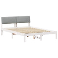 This contemporary platform bed frame with headboard combines style and functionality, designed to add a fresh and sleek look to any bedroom. It features a beautiful rectangular shape that complements modern home decor, offering a perfect blend of aesthetic appeal and practicality. This bed frame is ideal for those looking for a stylish, yet durable solution for their sleeping space, adding a touch of elegance and sophistication to any bedroom configuration. Materials: Constructed from solid pine wood, this bed frame showcases robust longevity and a timeless aesthetic. The high-quality wood is selected for its strength and durability, providing a stable and reliable foundation. Its natural look enhances the appeal, giving your bedroom a warm and inviting atmosphere. Included Components: The bed frame comes complete with a wall-mounted, polyester-upholstered headboard, emphasizing a streamlined and space-saving design. The headboard offers a presentable and polished look, enhancing overall comfort with its soft, cushioned surface. The square leg design ensures additional stability and sturdiness. Features /Function /Design: Adopting a contemporary style, this bed frame is the epitome of current design ,characterized by its sleek lines and fresh appearance. Its finished back allows for versatile placement, ensuring a polished look from all angles, while its durable structure is built to withstand daily use. Recommended Uses: Perfect for bedrooms in modern homes, this platform bed frame provides a sturdy base that negates the need for a box spring. It's an ideal choice for anyone looking to elevate their bedroom style or add a sophisticated touch to guest rooms. Care &Maintenance: Maintenance is effortless; simply wipe the frame clean with a damp cloth to maintain its pristine appearance. Regular cleaning ensures long-lasting allure while being gentle on the environment.