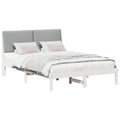 This bed frame with headboard combines modern style and practicality, making it suitable for those who appreciate simplicity and functionality in their bedroom furniture. The flat, rectangular design with a matte finish lends an inviting and elegant feel, creating a focal point in any room. Tailored for a seamless bedroom setup, it perfectly complements both classic and contemporary interiors, offering a stylish yet comfortable sleeping solution. Solid Pine Construction Crafted from solid pine wood, the frame ensures reliable support, demonstrating its robust nature and commitment to quality. This choice of construction material is renowned for its strength and ability to endure wear, providing a bed frame ready for prolonged use and enjoyment. Polyester Headboard The headboard is upholstered with polyester, delivering a soft, pleasing texture. Its wall-mounted design conserves space, contributing to a tidy and spacious room appearance, while retaining comfort and support for leisurely lounging or reading. Rustic Matte Finish The frame's matte finish offers a sophisticated look with a smooth, understated elegance. This gives it a timeless appeal, harmoniously blending with various décor styles, from vintage to ultra-modern. Fixed Slatted Frame Featuring a fixed slatted frame, this bed provides consistent mattress support, eliminating the need for a box spring. The slats'rigid nature aligns with an affordable and straightforward assembly using a screwdriver, which ensures that anyone can set it up with ease. Care and Maintenance Following a simple care routine, the bed frame maintains its looks by wiping with a damp cloth, providing a straightforward approach to keeping the furniture in pristine condition without needing specialized cleaning products.