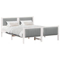 This elegant platform bed frame is a seamless blend of style and functionality, ideally suited for modern living spaces. Its rectangular shape and sleek lines make it a standout piece in any bedroom, while offering firm, even support for your mattress. Enjoy a contemporary look with a bed frame that features a polished appearance and reliable build, appealing to those with a keen eye for design. The stylish visuals are complimented by the integrated headboard and footboard, each crafted to enhance the product's overall quality experience. Materials: Crafted from durable solid pine wood, the bed frame offers high stability and a natural textured appearance. It's designed for indoor use, offering both functionality and style. This choice of material ensures a lasting structural integrity, holding up well under daily use. Included Components: The bed comes with a finely upholstered headboard and footboard, adding a layer of comfort and style to your bedroom setup. The wall-mounted headboard provides added support, while the footboard ensures that the mattress remains in place during extended use. Features /Function /Design: With its platform structure, this bed frame negates the need for a box spring, offering simplicity and maximized use of space. The wall-mounted headboard functionally saves room, creating a refined look that aligns well with minimalist sensibilities. Recommended Uses: Perfect for any bedroom, this bed frame brings a sophisticated touch, making it an excellent choice for interiors focused on modern design. Whether furnishing a master suite or a guest room, its versatile framework fits effortlessly into various room aesthetics. Care &Maintenance: Keep the surface looking fresh by wiping it with a damp cloth. The frame's matte finish resists stains, requiring minimal effort for regular cleaning, thus maintaining its pristine look over time.