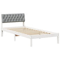 This platform bed frame melds contemporary design with functional elegance, making it an ideal centerpiece for modern bedrooms. Crafted with solid pine wood, it offers a sleek and fresh look that harmonizes with varied interior styles. The included wall-mounted polyester headboard not only saves space but adds an elegant touch, making the sleeping area inviting and stylish, inviting individuals to enjoy a tranquil and restorative retreat in their own bedroom. Solid Pine Wood Construction The frame, crafted from solid pine wood, ensures robustness and longevity, providing reliable support for many restful nights. Its natural grain brings warmth and character, enhancing the bed's appeal. Polyester Headboard An exquisite addition, the wall-mounted polyester headboard serves as a comfortable support for reading or watching TV. Its upholstered surface adds texture and sophistication to the space. Contemporary Style The bed's minimalist rectangular shape and clean lines reflect contemporary design ,suitable for a variety of bedroom aesthetics, from modern to minimalist. Square Solid Pine Legs Solid pine wood legs in a square design offer sturdy support and stability, complementing the bed's overall aesthetic while maintaining a firm posture throughout years of use. Easy Maintenance Minimal maintenance is required; simply wipe with a damp cloth to maintain its attractive appearance, keeping it looking fresh and clean effortlessly.