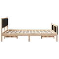 This Modern Bed Frame is an exquisite addition to any bedroom, effortlessly merging style and functionality. Its rectangular shape embodies contemporary elegance, making it an ideal choice for anyone seeking a sleek look and substantial presence in the bedroom. Whether for winter's coziness or summer's coolness, this bed frame is adaptable, creating a statement piece in any seasonal setup. Its overall appearance is augmented by the clean lines and dynamic styling, ready to set the tone of a vibrant bedroom setting. Solid Pine Wood Construction: The sturdy bed frame is crafted from high-quality solid pine wood, offering lasting strength and stability for peace of mind. This durable material ensures the frame withstands daily use and supports a comfortable night's rest. Platform Slatted Base: Equipped with a platform slatted frame, it provides uniform mattress support, enhancing relaxation and comfort. The solid base design minimizes movement, promoting a restful sleep experience. Polyester Upholstered Headboard: Featuring a chic polyester headboard, this bed frame adds a touch of elegance while providing a cushioned surface for leaning and reading. Its soft texture contrasts beautifully with the robust frame. Ample Under-Bed Room: Offers generous space beneath the bed, perfect for storing essentials, optimizing bedroom organization. This feature enhances room appearance by reducing clutter. Contemporary Design: Embodies current design with its sharp look, tailored for modern homes. Fits seamlessly into various interiors, enhancing the room's aesthetic while allowing versatility.