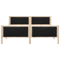This Modern Bed Frame is an exquisite addition to any bedroom, effortlessly merging style and functionality. Its rectangular shape embodies contemporary elegance, making it an ideal choice for anyone seeking a sleek look and substantial presence in the bedroom. Whether for winter's coziness or summer's coolness, this bed frame is adaptable, creating a statement piece in any seasonal setup. Its overall appearance is augmented by the clean lines and dynamic styling, ready to set the tone of a vibrant bedroom setting. Solid Pine Wood Construction: The sturdy bed frame is crafted from high-quality solid pine wood, offering lasting strength and stability for peace of mind. This durable material ensures the frame withstands daily use and supports a comfortable night's rest. Platform Slatted Base: Equipped with a platform slatted frame, it provides uniform mattress support, enhancing relaxation and comfort. The solid base design minimizes movement, promoting a restful sleep experience. Polyester Upholstered Headboard: Featuring a chic polyester headboard, this bed frame adds a touch of elegance while providing a cushioned surface for leaning and reading. Its soft texture contrasts beautifully with the robust frame. Ample Under-Bed Room: Offers generous space beneath the bed, perfect for storing essentials, optimizing bedroom organization. This feature enhances room appearance by reducing clutter. Contemporary Design: Embodies current design with its sharp look, tailored for modern homes. Fits seamlessly into various interiors, enhancing the room's aesthetic while allowing versatility.