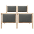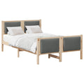 This Modern Bed Frame is an exquisite addition to any bedroom, effortlessly merging style and functionality. Its rectangular shape embodies contemporary elegance, making it an ideal choice for anyone seeking a sleek look and substantial presence in the bedroom. Whether for winter's coziness or summer's coolness, this bed frame is adaptable, creating a statement piece in any seasonal setup. Its overall appearance is augmented by the clean lines and dynamic styling, ready to set the tone of a vibrant bedroom setting. Solid Pine Wood Construction: The sturdy bed frame is crafted from high-quality solid pine wood, offering lasting strength and stability for peace of mind. This durable material ensures the frame withstands daily use and supports a comfortable night's rest. Platform Slatted Base: Equipped with a platform slatted frame, it provides uniform mattress support, enhancing relaxation and comfort. The solid base design minimizes movement, promoting a restful sleep experience. Polyester Upholstered Headboard: Featuring a chic polyester headboard, this bed frame adds a touch of elegance while providing a cushioned surface for leaning and reading. Its soft texture contrasts beautifully with the robust frame. Ample Under-Bed Room: Offers generous space beneath the bed, perfect for storing essentials, optimizing bedroom organization. This feature enhances room appearance by reducing clutter. Contemporary Design: Embodies current design with its sharp look, tailored for modern homes. Fits seamlessly into various interiors, enhancing the room's aesthetic while allowing versatility.
