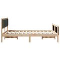 This Modern Bed Frame is an exquisite addition to any bedroom, effortlessly merging style and functionality. Its rectangular shape embodies contemporary elegance, making it an ideal choice for anyone seeking a sleek look and substantial presence in the bedroom. Whether for winter's coziness or summer's coolness, this bed frame is adaptable, creating a statement piece in any seasonal setup. Its overall appearance is augmented by the clean lines and dynamic styling, ready to set the tone of a vibrant bedroom setting. Solid Pine Wood Construction: The sturdy bed frame is crafted from high-quality solid pine wood, offering lasting strength and stability for peace of mind. This durable material ensures the frame withstands daily use and supports a comfortable night's rest. Platform Slatted Base: Equipped with a platform slatted frame, it provides uniform mattress support, enhancing relaxation and comfort. The solid base design minimizes movement, promoting a restful sleep experience. Polyester Upholstered Headboard: Featuring a chic polyester headboard, this bed frame adds a touch of elegance while providing a cushioned surface for leaning and reading. Its soft texture contrasts beautifully with the robust frame. Ample Under-Bed Room: Offers generous space beneath the bed, perfect for storing essentials, optimizing bedroom organization. This feature enhances room appearance by reducing clutter. Contemporary Design: Embodies current design with its sharp look, tailored for modern homes. Fits seamlessly into various interiors, enhancing the room's aesthetic while allowing versatility.