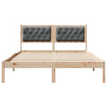 This bed frame exemplifies contemporary sophistication with its clean lines and minimalist elegance, seamlessly fitting into any modern bedroom. With a sturdy structure, this bed provides more than just a place to rest but a centerpiece that transforms your room into a sleek, welcoming space. Imagine its aesthetic complementing crisp, white linens, or contrasting beautifully with darker hues to create a cozy yet stylish retreat. Its design suggests a taste for elegance and functionality, ideal for individuals who value simplicity without compromising quality. Solid Pine Construction The bed frame showcases solid pine wood, renowned for its durability and timeless appeal. Its robust nature ensures stability while contributing to a warm, natural aesthetic that enhances bedroom comfort. Fixed Slatted Frame Featuring a rigid, non-flexible structure that aligns with contemporary needs, the slatted frame supports mattresses effectively, offering a foundation that balances comfort with affordability. Headboard with Polyester Finish The padded headboard crafted from polyester elevates the comfort level, providing a gentle surface next to which you can relax while reading or watching TV, enriching your bedroom experience. Modern Square Legs Solid pine square legs add to the frame's sturdy appeal, maintaining stability and offering a simple design that supports a wide range of bedroom décor choices. Under-bed Space and Cleaning With ample space under the bed, it's perfect for discreet storage, keeping your area tidy. For maintenance, simply wipe it with a damp cloth to maintain its fresh look.