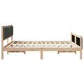 This Modern Bed Frame is an exquisite addition to any bedroom, effortlessly merging style and functionality. Its rectangular shape embodies contemporary elegance, making it an ideal choice for anyone seeking a sleek look and substantial presence in the bedroom. Whether for winter's coziness or summer's coolness, this bed frame is adaptable, creating a statement piece in any seasonal setup. Its overall appearance is augmented by the clean lines and dynamic styling, ready to set the tone of a vibrant bedroom setting. Solid Pine Wood Construction: The sturdy bed frame is crafted from high-quality solid pine wood, offering lasting strength and stability for peace of mind. This durable material ensures the frame withstands daily use and supports a comfortable night's rest. Platform Slatted Base: Equipped with a platform slatted frame, it provides uniform mattress support, enhancing relaxation and comfort. The solid base design minimizes movement, promoting a restful sleep experience. Polyester Upholstered Headboard: Featuring a chic polyester headboard, this bed frame adds a touch of elegance while providing a cushioned surface for leaning and reading. Its soft texture contrasts beautifully with the robust frame. Ample Under-Bed Room: Offers generous space beneath the bed, perfect for storing essentials, optimizing bedroom organization. This feature enhances room appearance by reducing clutter. Contemporary Design: Embodies current design with its sharp look, tailored for modern homes. Fits seamlessly into various interiors, enhancing the room's aesthetic while allowing versatility.