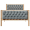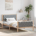 This Modern Bed Frame showcases a sleek and contemporary design that perfectly complements any bedroom's aesthetic. With its clean lines and structured form, it presents a versatile piece ideal for both minimalist and elegant interiors. The solid pine wood frame promises strength and stability, providing a secure haven for restful nights. Enhanced by the soft polyester upholstery, this bed frame balances functionality with style, offering a cozy retreat that adapts to both winter cuddliness and the refreshing summer breeze. Solid Pine Wood Frame Constructed with robust solid pine wood, this bed frame offers exceptional stability for a restful sleep environment. The wood's natural strength ensures prolonged use, making it a reliable centerpiece in your bedroom for years to come. Sleek Polyester Headboard The bed features a well-designed headboard upholstered with high-quality polyester, adding a touch of sophistication and comfort. A modern upgrade, the headboard offers plush support for reading or lounging in bed, fitting seamlessly with any decor style. Fixed Slatted Frame Equipped with a fixed slatted frame, this bed provides steady support for your mattress, enhancing its longevity. The rigid slats contribute to a firmer sleep surface, maximizing comfort and spinal support for users. Versatile Square Legs The solid pine wood legs are designed with a minimalist square shape, ensuring steadiness while adding a contemporary flair. These legs are specifically crafted to support the frame's weight and provide enduring security, blending seamlessly with various design aesthetics. Care and Maintenance To ensure longevity and pristine appearance, simply wipe the bed with a damp cloth for easy cleaning. Regular maintenance sustains the bed's aesthetic appeal and construct integrity over time.