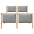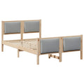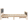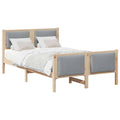 This Modern Bed Frame is an exquisite addition to any bedroom, effortlessly merging style and functionality. Its rectangular shape embodies contemporary elegance, making it an ideal choice for anyone seeking a sleek look and substantial presence in the bedroom. Whether for winter's coziness or summer's coolness, this bed frame is adaptable, creating a statement piece in any seasonal setup. Its overall appearance is augmented by the clean lines and dynamic styling, ready to set the tone of a vibrant bedroom setting. Solid Pine Wood Construction: The sturdy bed frame is crafted from high-quality solid pine wood, offering lasting strength and stability for peace of mind. This durable material ensures the frame withstands daily use and supports a comfortable night's rest. Platform Slatted Base: Equipped with a platform slatted frame, it provides uniform mattress support, enhancing relaxation and comfort. The solid base design minimizes movement, promoting a restful sleep experience. Polyester Upholstered Headboard: Featuring a chic polyester headboard, this bed frame adds a touch of elegance while providing a cushioned surface for leaning and reading. Its soft texture contrasts beautifully with the robust frame. Ample Under-Bed Room: Offers generous space beneath the bed, perfect for storing essentials, optimizing bedroom organization. This feature enhances room appearance by reducing clutter. Contemporary Design: Embodies current design with its sharp look, tailored for modern homes. Fits seamlessly into various interiors, enhancing the room's aesthetic while allowing versatility.