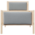 This Modern Bed Frame is an exquisite addition to any bedroom, effortlessly merging style and functionality. Its rectangular shape embodies contemporary elegance, making it an ideal choice for anyone seeking a sleek look and substantial presence in the bedroom. Whether for winter's coziness or summer's coolness, this bed frame is adaptable, creating a statement piece in any seasonal setup. Its overall appearance is augmented by the clean lines and dynamic styling, ready to set the tone of a vibrant bedroom setting. Solid Pine Wood Construction: The sturdy bed frame is crafted from high-quality solid pine wood, offering lasting strength and stability for peace of mind. This durable material ensures the frame withstands daily use and supports a comfortable night's rest. Platform Slatted Base: Equipped with a platform slatted frame, it provides uniform mattress support, enhancing relaxation and comfort. The solid base design minimizes movement, promoting a restful sleep experience. Polyester Upholstered Headboard: Featuring a chic polyester headboard, this bed frame adds a touch of elegance while providing a cushioned surface for leaning and reading. Its soft texture contrasts beautifully with the robust frame. Ample Under-Bed Room: Offers generous space beneath the bed, perfect for storing essentials, optimizing bedroom organization. This feature enhances room appearance by reducing clutter. Contemporary Design: Embodies current design with its sharp look, tailored for modern homes. Fits seamlessly into various interiors, enhancing the room's aesthetic while allowing versatility.