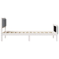 This Modern Bed Frame is an exquisite addition to any bedroom, effortlessly merging style and functionality. Its rectangular shape embodies contemporary elegance, making it an ideal choice for anyone seeking a sleek look and substantial presence in the bedroom. Whether for winter's coziness or summer's coolness, this bed frame is adaptable, creating a statement piece in any seasonal setup. Its overall appearance is augmented by the clean lines and dynamic styling, ready to set the tone of a vibrant bedroom setting. Solid Pine Wood Construction: The sturdy bed frame is crafted from high-quality solid pine wood, offering lasting strength and stability for peace of mind. This durable material ensures the frame withstands daily use and supports a comfortable night's rest. Platform Slatted Base: Equipped with a platform slatted frame, it provides uniform mattress support, enhancing relaxation and comfort. The solid base design minimizes movement, promoting a restful sleep experience. Polyester Upholstered Headboard: Featuring a chic polyester headboard, this bed frame adds a touch of elegance while providing a cushioned surface for leaning and reading. Its soft texture contrasts beautifully with the robust frame. Ample Under-Bed Room: Offers generous space beneath the bed, perfect for storing essentials, optimizing bedroom organization. This feature enhances room appearance by reducing clutter. Contemporary Design: Embodies current design with its sharp look, tailored for modern homes. Fits seamlessly into various interiors, enhancing the room's aesthetic while allowing versatility.