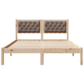 This bed frame exemplifies contemporary sophistication with its clean lines and minimalist elegance, seamlessly fitting into any modern bedroom. With a sturdy structure, this bed provides more than just a place to rest but a centerpiece that transforms your room into a sleek, welcoming space. Imagine its aesthetic complementing crisp, white linens, or contrasting beautifully with darker hues to create a cozy yet stylish retreat. Its design suggests a taste for elegance and functionality, ideal for individuals who value simplicity without compromising quality. Solid Pine Construction The bed frame showcases solid pine wood, renowned for its durability and timeless appeal. Its robust nature ensures stability while contributing to a warm, natural aesthetic that enhances bedroom comfort. Fixed Slatted Frame Featuring a rigid, non-flexible structure that aligns with contemporary needs, the slatted frame supports mattresses effectively, offering a foundation that balances comfort with affordability. Headboard with Polyester Finish The padded headboard crafted from polyester elevates the comfort level, providing a gentle surface next to which you can relax while reading or watching TV, enriching your bedroom experience. Modern Square Legs Solid pine square legs add to the frame's sturdy appeal, maintaining stability and offering a simple design that supports a wide range of bedroom décor choices. Under-bed Space and Cleaning With ample space under the bed, it's perfect for discreet storage, keeping your area tidy. For maintenance, simply wipe it with a damp cloth to maintain its fresh look.