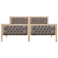 This Modern Bed Frame encompasses the essence of minimalist design with its simple structure and fine craftsmanship. Crafted for the contemporary bedroom, this piece offers a sleek, orderly look that pairs effortlessly with various decors. Its solid pine wood construction ensures stability, while the 100% polyester upholstered headboard adds a soft, inviting touch. Suitable for indoor use, it seamlessly combines practicality and style for those who appreciate sophisticated elegance. Frame Material: Constructed from solid pine wood, the bed frame ensures reliable support and robustness. This hardwood offers a natural aesthetic while resisting everyday wear and tear, preserving its integrity over years of use. Its structured shape contributes to both the visual and functional stability, making it a practical choice for any home. Headboard Design: The upholstered headboard made of plaster and 100% polyester provides both comfort and a modern look. It serves as a cozy backdrop for reading or watching TV, while its sophisticated appearance enhances the room's decor effortlessly. This headboard aligns with the minimalist ideals of the frame by incorporating subtle, refined elegance. Fixed Slatted Frame: Equipped with a rigid, non-flexible slatted frame, this design offers consistent mattress support for a restful night's sleep. While maintaining a budget-friendly approach, it provides stable and adequate support to maximize comfort. Its construction also ensures the mattress stays in place. Contemporary Legs: Square legs fashioned from solid pine wood boost the overall structural support. These sturdy legs add a touch of contemporary flair, balancing style with reliable functionality. Their square form complements the bed's aesthetic, affirming its strong yet refined character. Care Instructions: To maintain the bed's appearance, simply wipe the structure with a damp cloth. This straightforward approach ensures a perpetually fresh look without demanding complex maintenance, adding convenience to beauty and utility.