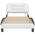 Get a better restful night's sleep from this bed frame with LED lights! It makes a welcoming addition to any bedroom. Durable faux leather: Premium faux leather is a highly durable material. It is resistant to stain, making it easy to clean with a damp cloth. The smooth surface also gives a luxurious look and the beauty of real leather.Plywood slats: The plywood slats provide good weight distribution, ensuring that the mattress stays in place with every twist and turn of your body during sleep.Excellent support: The bed header provides you with excellent back support while you're sitting up in bed to read or watch TV.Colourful LED strip: Bring playfulness into darkness with colourful LED lights! The hook and loop fasteners on the back of the headboard cushion can be used to secure the LED lights.Waved side design: The waved look of the bed frame is stylish and sophisticated, adding a modern and elegant touch to your decor, making it the focal point of your bedroom. Good to know:A mattress is not included with this bed. We do offer a various selection of mattresses. You can check our shop for a matching mattress.The product has a USB connector that requires a certified 5V USB power source (not included).