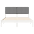 This Wooden Bed Frame with Upholstered Headboard exemplifies modern bedroom furniture essentials, blending functionality with style. Designed for indoor use only, this minimalist yet chic piece is perfect for contemporary, clutter-free spaces, offering both aesthetic allure and practical comfort. Solid Pine Wood Construction : The bed frame is constructed from high-quality solid pine wood, ensuring longevity and robust support. Its natural charm adds warmth to any bedroom decor. Presentable Design : The bed's back type is finished to be visually presentable, offering an appealing look from every angle. It enhances the room's overall ambiance. Foam Upholstered Headboard : Provides an elegant and cushioned touch, supporting leaning comfort while reading or watching TV. The removable cover ensures easy cleaning and maintenance. No Boxspring Needed : The platform frame doesn’t require an additional boxspring, simplifying the setup. The solid slatted base offers firm mattress support. Convenient Cleaning : Simple to maintain, with care involving a quick wipe with a damp cloth, keeping it pristine with minimal effort.