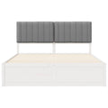 This Wooden Bed Frame with Upholstered Headboard is a stunning centerpiece for any bedroom, blending a modern style with functionality and comfort. The sleek lines and minimalist design provide a contemporary aesthetic, making it an attractive choice for anyone looking to enhance the elegance of their sleeping space. Its neutral color palette fits seamlessly into various decor styles, allowing you to style and personalize your room effortlessly. Solid Pine Wood Frame Constructed from high-quality solid pine wood, this bed frame offers a reliable and stable foundation for restful nights. The material ensures longevity, promising continued support and style in your sleeping environment. Upholstered Headboard Featuring a cushioned headboard upholstered with foam, it provides additional comfort for reading or lounging. Its removable and washable cushion cover makes maintenance a breeze, allowing you to keep it looking fresh and clean. Platform Slatted Frame A platform slatted frame eliminates the need for a separate box spring, offering firm and even mattress support. This setup enhances durability and ensures a restful sleep experience thanks to the evenly distributed support. Smooth Assembly Designed for convenience, this bed requires simple assembly using just a screwdriver. With easy-to-follow instructions, you and one other person can quickly set up the bed frame, making it a practical solution for anyone needing quick furniture construction. Simplified Cleanliness Maintaining this bed frame is straightforward; simply wipe down surfaces with a damp cloth to keep it looking pristine. This ease of care ensures the frame remains a clean, elegant focal point in your bedroom for years to come.