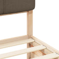 This Wooden Bed Frame with Upholstered Headboard exudes a modern sophistication, perfect for any contemporary bedroom. Its rectangular shape and minimalist style create an effortlessly elegant focal point, while ensuring both comfort and functionality. Solid Pine Construction: Crafted from high-quality solid pine wood, this bed frame is both strong and durable, providing a reliable foundation for your sleep. The wood's natural grains add a touch of rustic charm, complementing the modern design and ensuring a versatile piece that fits various décor styles. Elegant Upholstered Headboard: The headboard is generously padded with foam, offering a comfortable leaning surface when reading or lounging. Its cover, which is removable and washable, adds convenience by simplifying maintenance. Platform Slatted Frame: Features a solid slatted base that offers even support for the mattress, eliminating the need for a box spring. This design not only enhances mattress longevity but also provides a firmer sleeping surface. Simple Assembly: Designed for easy setup, the bed frame requires assembly with a screwdriver by two people. This ensures robustness and safety while allowing you to enjoy your new bed in no time. Easy Maintenance: The frame can be wiped clean with a damp cloth, making it easy to maintain its appearance. This feature provides practicality and ease of care, ensuring your bed remains a stunning centerpiece in your bedroom for years to come.