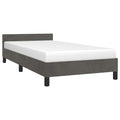 Get a better restful night's sleep from this bed frame with headboard! It makes a welcoming addition to any bedroom. Soft velvet: Velvet is a soft, luxurious fabric that is recognised by its dense pile of evenly cut fibres that have a smooth nap. Velvet fabric features a distinctive soft feel, making it comfortable to touch.Supportive legs: The bed is supported by sturdy legs, which ensure its stability, safety and firmness.Plywood slats: The plywood slats provide good weight distribution, ensuring that the mattress stays in place with every twist and turn of your body during sleep. Note:The delivery includes a bed frame only. The mattress is not included. You can check our shop for the matching mattresses.Each product comes with an assembly manual in the box for easy assembly. Good to know:To save space, some parts or cushions are packed inside the furniture—check zipped compartments or beneath the seat cover for any hidden components.