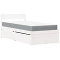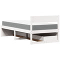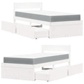Featuring a simple yet timeless design, this bed is meant to make a truly practical and decorative addition to your bedroom. Solid pine wood: Solid pine wood is a beautiful natural material. Pine wood has a straight grain, and the knots give the material its signature, rustic look.Durable fabric: The fabric features a simple and clean look, and is breathable and durable.Pocket spring mattress: This pocket sprung mattress has individual pocket springs that work independently to provide personalised support by reacting only to pressure in each area. This design prevents "roll-together" and reduces motion transfer compared to traditional open coil mattresses. Each pocket spring supports the body individually.Storage function: The included bed drawers provide ample storage space for storing your essentials, keeping your room clean and tidy.Slats for optimal support: The bed frame is complete with slats to offer essential support and breathability to your mattress. Good to know:For hygiene reasons, the mattress cannot be returned if the packaging is removed or opened.