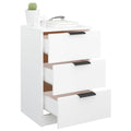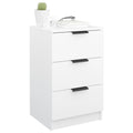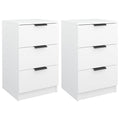 These bedside cabinets are a perfect combination of modern styling and practicality, making them an ideal choice to bring extra charm to your bedroom. Stable material: The engineered wood is of exceptional quality with smooth surface and features strength, stability and resistance to moisture.Ample storage space: The side cabinet is equipped with three separate drawers that offer ample storage space to keep items orderly and organised.Sturdy top: The sturdy top of the bed side cabinet is ideal for displaying your decorative objects, photo frames, or potted plants. Warning:In order to prevent overturning, this product must be used with the wall attachment device provided.Note:Each product comes with an assembly manual in the box for easy assembly.