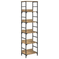 This Modern Bookshelf harmoniously blends style and functionality, suitable for any living space. Its presence is marked by clean lines and understated elegance, creating an inviting visual aesthetic. Whether it's filled with vibrant novels or minimalist decor, this bookshelf enhances the ambiance of the room, offering bewitching appeal to both book lovers and home decor enthusiasts seeking modern furnishings. Engineered Wood Surface The surface of the Modern Bookshelf is crafted with engineered wood known for its resistance to abrasion and wear. This choice not only enhances the shelf's durability but also provides a visually appealing texture that complements modern interiors perfectly. Modern Freestanding Design The bookshelf features a free-standing design ideal for diverse placements. Whether you use it in the living room, bedroom, study, or office, its modern style with clean lines integrates seamlessly with various decor styles, offering both practicality and aesthetic breadth. Durable Steel Frame At the core of this bookshelf is a sturdy steel frame, ensuring robust structure and stability. Whether placed on carpet or hardwood, the metal legs stand firm, maintaining its upright position even when heavily loaded with books and decor pieces, thanks to its square leg design. Efficient Room Usage Designed to optimize storage while occupying minimal floor space, this bookshelf uses vertical space efficiently. Its ample shelves can house an extensive collection of books, decorations, and even office essentials, making it a great asset in organized living. Easy Maintenance With straightforward care instructions, maintaining the bookshelf's pristine appearance is a breeze. Simply wipe with a dry cloth to keep it clean, and for safety and stability reasons, secure the unit to a wall using suitable fixtures, making it a reliable addition to any household.