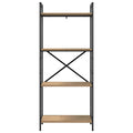 This Industrial Bookshelf enhances any space with its robust build and stylish look, combining aesthetic appeal with functional utility. Made to hold books, decor, and more, it provides ample storage in any room such as a home office or living room. Its bold silhouette is crafted from sturdy materials, with a contemporary industrial design drawing inspiration from urban lofts. Perfect for those seeking a functional yet stylish solution, it seamlessly complements a variety of interior styles. Materials: Featuring engineered wood, renowned for its abrasion resistance, this bookshelf offers a sophisticated appearance and excellent durability over time. Engineered wood presents a smooth surface ready for your most treasured items, promising longevity and strength to support your storage needs. Included Components: The bookshelf is designed with board shelves constructed for flexibility and stability. Connected by a robust steel frame, its square legs ensure the bookshelf remains steady, even on uneven surfaces. The freestanding floor design adds versatility, making it easy to move or reposition as required. Features /Function /Design: Boasting easy maintenance and a robust frame, this bookshelf delivers both practicality and reliability. As a practical solution, it allows for a seamless organization of books and decor, making it an indispensable companion for those who value both style and orderliness in their space. Recommended Uses: Ideal for the home office, study, or living room, the bookshelf serves as a reliable storage unit for books, decorative items, and various knick-knacks. Its industrial flair complements various styles, fitting elegantly into contemporary and traditional room settings alike. Care &Maintenance: Keep your bookshelf pristine by wiping it with a dry cloth, avoiding harsh chemicals and abrasives. These simple care steps ensure that the bookshelf remains a lasting fixture, maintaining its aesthetic appeal for years to come.