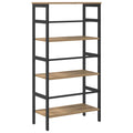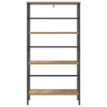 This Industrial Bookshelf stands as a striking exemplar of contemporary industrial aesthetics, characterized by its sleek, bold lines and raw materials, making it an ideal addition to home offices, studies, or living rooms. With its robust structure crafted from engineered wood and steel, this freestanding unit seamlessly combines functionality with modern flair. The richly layered shelves offer ample room for storing books, decor, and other essentials, embodying both style and utility as it complements a variety of urban and rustic settings. Industrial Style Design The bookshelf elevates any environment with its industrial-inspired design, reflecting the rugged charm of industrial spaces with clean lines and a bold, black finish. This aesthetic appeal makes it a versatile centerpiece, fitting seamlessly into home offices, living rooms, or studies, providing a modern edge to the decor. Ample Storage Capacity Featuring numerous rectangular board shelves made from engineered wood, this bookshelf ensures each shelf is ready to hold a substantial amount of books, decor items, or office essentials. Its easy-access shelves invite organization and display, seamlessly integrating utility and style for a tidy, stylish space. Robust Construction Built with a steel frame and square legs, the bookshelf guarantees steadfast support, ideal for heavy loading. The engineered wood surface adds durability, making it abrasion-resistant and low-maintenance, ensuring the bookshelf's longevity through daily use, while maintaining its aesthetic appeal. Adjustable Stability Levelers on the bookshelf’s feet provide easy adjustments to stabilize it on uneven surfaces. The inclusion of levelers not only protects floor finishes but also ensures that the bookshelf maintains its sturdiness and balance even on slightly sloped floors. Simple Maintenance Instructions Designed with convenience in mind, the bookshelf surfaces require minimal maintenance. Wipe with a dry cloth to keep it dust-free and maintain its pristine appearance. Avoid harsh chemicals and abrasives, preserving its finish against wear, tear, and unnecessary cleaning-induced deterioration.