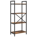 This Industrial Bookshelf enhances any space with its robust build and stylish look, combining aesthetic appeal with functional utility. Made to hold books, decor, and more, it provides ample storage in any room such as a home office or living room. Its bold silhouette is crafted from sturdy materials, with a contemporary industrial design drawing inspiration from urban lofts. Perfect for those seeking a functional yet stylish solution, it seamlessly complements a variety of interior styles. Materials: Featuring engineered wood, renowned for its abrasion resistance, this bookshelf offers a sophisticated appearance and excellent durability over time. Engineered wood presents a smooth surface ready for your most treasured items, promising longevity and strength to support your storage needs. Included Components: The bookshelf is designed with board shelves constructed for flexibility and stability. Connected by a robust steel frame, its square legs ensure the bookshelf remains steady, even on uneven surfaces. The freestanding floor design adds versatility, making it easy to move or reposition as required. Features /Function /Design: Boasting easy maintenance and a robust frame, this bookshelf delivers both practicality and reliability. As a practical solution, it allows for a seamless organization of books and decor, making it an indispensable companion for those who value both style and orderliness in their space. Recommended Uses: Ideal for the home office, study, or living room, the bookshelf serves as a reliable storage unit for books, decorative items, and various knick-knacks. Its industrial flair complements various styles, fitting elegantly into contemporary and traditional room settings alike. Care &Maintenance: Keep your bookshelf pristine by wiping it with a dry cloth, avoiding harsh chemicals and abrasives. These simple care steps ensure that the bookshelf remains a lasting fixture, maintaining its aesthetic appeal for years to come.