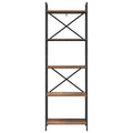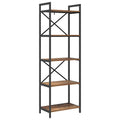 This Industrial Bookshelf enhances any space with its robust build and stylish look, combining aesthetic appeal with functional utility. Made to hold books, decor, and more, it provides ample storage in any room such as a home office or living room. Its bold silhouette is crafted from sturdy materials, with a contemporary industrial design drawing inspiration from urban lofts. Perfect for those seeking a functional yet stylish solution, it seamlessly complements a variety of interior styles. Materials: Featuring engineered wood, renowned for its abrasion resistance, this bookshelf offers a sophisticated appearance and excellent durability over time. Engineered wood presents a smooth surface ready for your most treasured items, promising longevity and strength to support your storage needs. Included Components: The bookshelf is designed with board shelves constructed for flexibility and stability. Connected by a robust steel frame, its square legs ensure the bookshelf remains steady, even on uneven surfaces. The freestanding floor design adds versatility, making it easy to move or reposition as required. Features /Function /Design: Boasting easy maintenance and a robust frame, this bookshelf delivers both practicality and reliability. As a practical solution, it allows for a seamless organization of books and decor, making it an indispensable companion for those who value both style and orderliness in their space. Recommended Uses: Ideal for the home office, study, or living room, the bookshelf serves as a reliable storage unit for books, decorative items, and various knick-knacks. Its industrial flair complements various styles, fitting elegantly into contemporary and traditional room settings alike. Care &Maintenance: Keep your bookshelf pristine by wiping it with a dry cloth, avoiding harsh chemicals and abrasives. These simple care steps ensure that the bookshelf remains a lasting fixture, maintaining its aesthetic appeal for years to come.