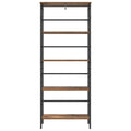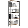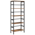 This Industrial Bookshelf stands as a striking exemplar of contemporary industrial aesthetics, characterized by its sleek, bold lines and raw materials, making it an ideal addition to home offices, studies, or living rooms. With its robust structure crafted from engineered wood and steel, this freestanding unit seamlessly combines functionality with modern flair. The richly layered shelves offer ample room for storing books, decor, and other essentials, embodying both style and utility as it complements a variety of urban and rustic settings. Industrial Style Design The bookshelf elevates any environment with its industrial-inspired design, reflecting the rugged charm of industrial spaces with clean lines and a bold, black finish. This aesthetic appeal makes it a versatile centerpiece, fitting seamlessly into home offices, living rooms, or studies, providing a modern edge to the decor. Ample Storage Capacity Featuring numerous rectangular board shelves made from engineered wood, this bookshelf ensures each shelf is ready to hold a substantial amount of books, decor items, or office essentials. Its easy-access shelves invite organization and display, seamlessly integrating utility and style for a tidy, stylish space. Robust Construction Built with a steel frame and square legs, the bookshelf guarantees steadfast support, ideal for heavy loading. The engineered wood surface adds durability, making it abrasion-resistant and low-maintenance, ensuring the bookshelf's longevity through daily use, while maintaining its aesthetic appeal. Adjustable Stability Levelers on the bookshelf’s feet provide easy adjustments to stabilize it on uneven surfaces. The inclusion of levelers not only protects floor finishes but also ensures that the bookshelf maintains its sturdiness and balance even on slightly sloped floors. Simple Maintenance Instructions Designed with convenience in mind, the bookshelf surfaces require minimal maintenance. Wipe with a dry cloth to keep it dust-free and maintain its pristine appearance. Avoid harsh chemicals and abrasives, preserving its finish against wear, tear, and unnecessary cleaning-induced deterioration.